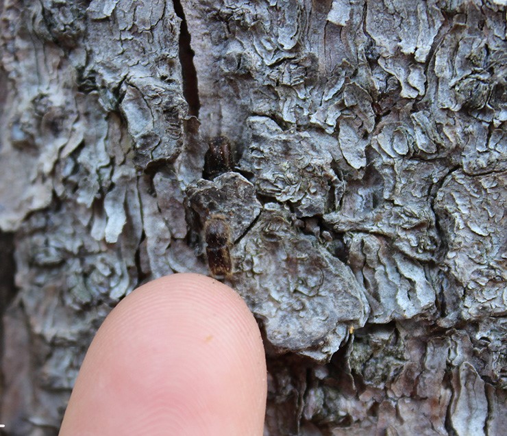 Первое, на что стоит обратить внимание, — это крошечные дырочки в коре. Через них взрослые особи выходят наружу, а также попадает воздух в ходы, сделанные под корой. - Насечка буровой муки (буровой пыль)